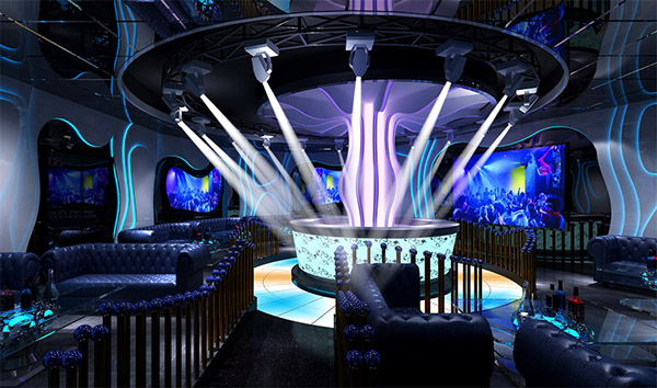 六,宇宙旋轉燈:這種燈形狀多樣,有圓形、菱形、橄欖形等不同類型,可以將彩色的光灑向整個包廂,色彩極為絢麗。
