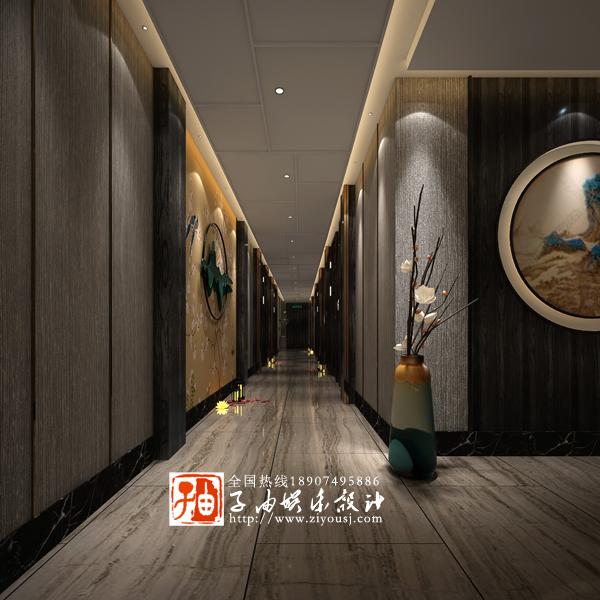華盛足浴SPA館位於華盛大酒店三樓,整棟建築共八層,一樓酒店大廳,二樓華盛猫咪在线视频,三樓華盛足浴SPA館,四至八樓酒店客房,其中二樓足浴占地麵積1600平方,總共36間包廂,華盛猫咪在线视频是猫咪视频APP官网設計猫咪在线视频公司2016年設計的,投資方對當時的設計特別滿意,有了華盛猫咪在线视频設計做鋪墊,也基於雙方的信任,所以足浴SPA設計就特別順利,華盛足浴SPA館采用新中式風格,色彩鮮豔,中國紅,花布蘭牆布在大理石光滑材質襯托下驚豔而溫馨,大量水墨字畫蘊含強大文化氣息,讓雅調貫穿整個足浴SPA空間。